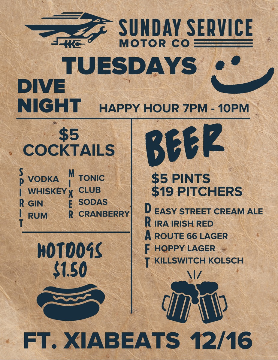 Tuesday, Dec 16th | 7–10PM Sunday Service Motor Co.